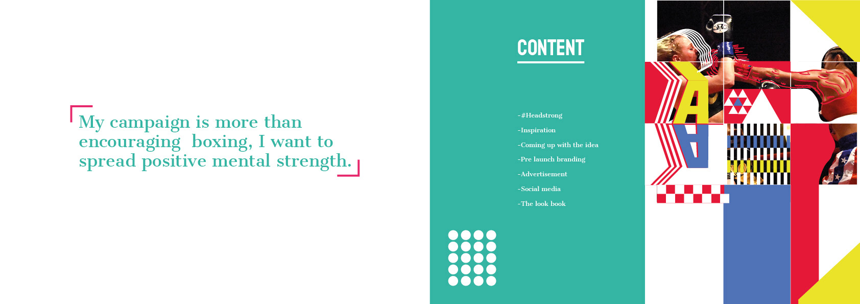 Tackling the D&AD Adidas Young Blood brief to make a statement (#Headstrong). Choosing boxing as the backbone of my campaign to empower young women to incorporate sports into their lives. From my research, a large number of successful women used sports to enhance a lot of the mental skills they have today. That's why by boxing, you won't just succeed in the ring, you'll find success everywhere.